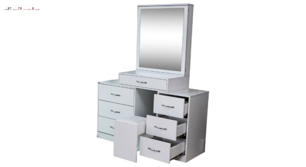 این میز آرایش ساخته شده از چوب با روکش ملامینه بوده این محصول بدنه ای بسیار مستحکم با طول عمر بالا دارد.